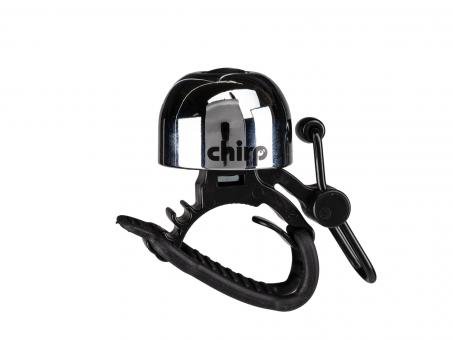 Befestigung für 19,2 bis 31,8 mm Lenker-Ø, Messing-Klangkörper, Details, heller, lauter Klang, Die besonders kompakte Mini Fahrradklingel von Chirp bike parts passt an nahezu alle Lenker., einfache, universelle Montage per Gummiriemen, Dank der verschiedengroßen Gummiriemen ist die Chirp bike parts Mini Glocke einfach und ohne Schrauben montiert.