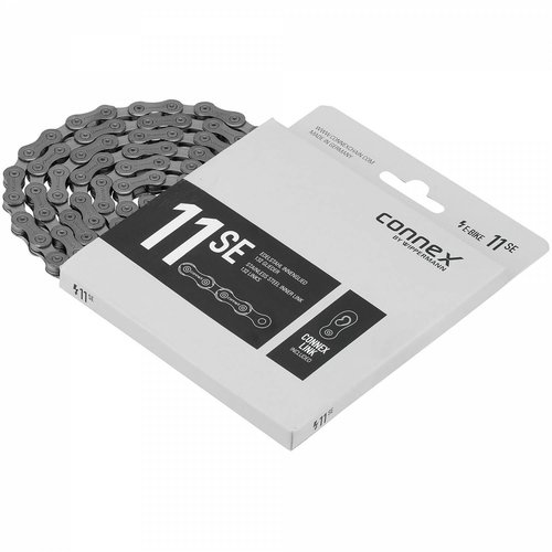 Die E-Bike 11SE 11-fach Kette von Connex hält den hohen Belastungen des sportlichen Einsatzes von E-Bikes stand und bietet eine hervorragende Schaltperformance,Anwendungsbereich: MTBKompatibilität: mit allen 11-Gang-Schaltungen.Anzahl der Kettenglieder: 132Verschlussart: Kettenschloss (Link)Größe: 1/2" x 11/128Niettyp: festLänge des Stifts: 5,6 mmRichtungsabhängig: NeinMaterial: Edelstahl (innere Glieder), Stahl (äußere Glieder).Spannkraft: >2000 NHärtung des Bolzens XHBInnere Breite: 2,2 mm