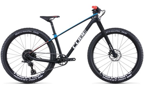 Cube Elite 240 C:62 Pro in carbon n blue n red Von unserer Zusammenarbeit mit hochrangigen Rennfahrern wissen wir, was selbige brauchen: einen steifen, reaktionsfreudigen und vor allem leichten Rahmen. Einen wie den Elite 240 C:62, ein leichtes Carbonchassis, das speziell auf die geringere Körpergröße junger Racer abgestimmt wurde. Jedes noch so kleine Detail zielt auf wenig Gewicht ab, und das ohne Abstriche in Sachen Stabilität oder Steifigkeit. Ein präzises Steuerverhalten und effiziente Kraftübertragung versprechen das konifizierte Steuerrohr, die Vollcarbongabel und die 12 mm Steckachsen vorne und hinten. Und natürlich haben wir auch an den Komfort gedacht und die Kettenstreben schlank gestaltet. Sämtliche Kabelzüge verlaufen im Inneren, damit sind Langlebigkeit und dauerhaft präzise Gangwechsel garantiert. Was übrigens auch die Eltern freuen wird, denn weniger Wartungsaufwand heißt mehr Zeit zum Anfeuern! Schon kleine Racer wissen: Nur wer am Limit fährt, gewinnt das Rennen. Genau für diese Ansprüche haben wir das brandneue Elite 240 C:62 Pro entwickelt, in dem all unsere Erfahrung in der Konstruktion supererfolgereicher Race-Mountainbikes steckt. Es ist einfach nur etwas kleiner. Sein geringes Gewicht hat es einem Vollcarbonrahmen samt Vollcarbongabel zu verdanken, die breit gefächerte, zuverlässige Advent X 1x10-fach Schaltung wechselt schnell und präzise von Gang zu Gang. Außerdem ist der Steuersatz mit einer Lenkeinschlagsbegrenzung versehen, wodurch das Oberrohr im Fall eines Sturzes geschützt ist. Eine 12x100 Steckachse vorne, der Lenker, Griffe und Bremshebel in Kindergröße sowie die hydraulischen Scheibenbremsen vermitteln in jeder Situation volle Kontrolle. Und wie man es von einem waschechten Race-Bike erwartet, ist es mit weiteren Highend-Details ausgerüstet, zum Beispiel ultraleichten Schwalbe Aerothan Schläuchen und Newmen Laufrädern.