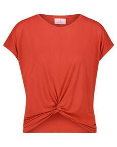 Dieses T-Shirt aus weicher Viskose bietet ein angenehmes Tragegefühl und besticht durch ein stilvolles Knotendetail vorne. Das fließende Material sorgt für eine feminine Silhouette, die sowohl lässig als auch elegant kombiniert werden kann.