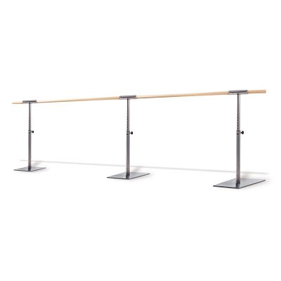 Die Dinamica Ballet Ballettanlage Isa: Leicht zu transportieren, höhenverstellbar und standfest - Bei der höhenverstellbaren mobilen Ballettstange Isa sind in den beiden Sockeln je 4 bodenschonenden Gummirollen montiert, mit denen Sie die Ballettanlage leicht bewegen können. Die Ausführungen in 4 m und 5 m Länge steht auf 3 Ständern. Die Höhe der Ballettstange variieren Sie einfach mittels einer Sterngriffschraube. Die Höheneinstellungen sind von 1-14 durchnummeriert, so dass Sie an beiden Standfüßen schnell die Höhe übereinstimmend einstellen können. - Produktdetails: - Minimale Höhe: 81,5 cm - Maximale Höhe: 120,5 cm - Standfüße und Sockel aus Stahl - Standfüße: ø 50 mm - Sockelabmessungen: 39,5x32x2 cm - Gesamtgewicht mit Rollen (Ballettstange 2 m): 50 kg - Gesamtgewicht mit Rollen (Ballettstange 3 m): 51 kg - Gesamtgewicht mit Rollen (Ballettstange 4 m): 76 kg - Gesamtgewicht mit Rollen (Ballettstange 5 m): 78 kg