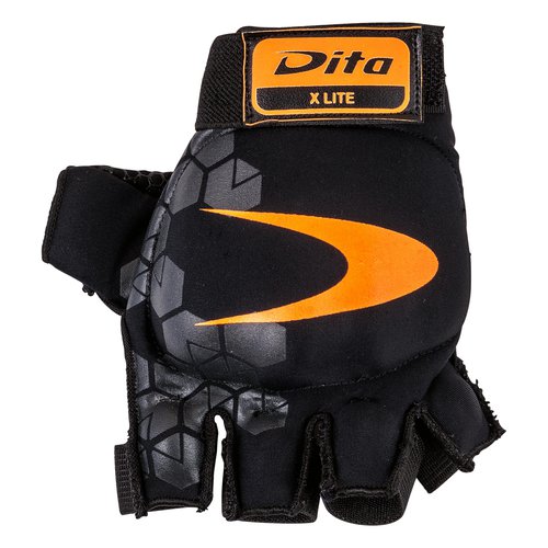 Dita Feldhockey-Handschuh mit offenem Handflächen-Design für mehr Griffgefühl am Schläger. Kunststoffschalen aus Polypropylen mit weichem Schaumstoff.|Schalen aus Polypropylen an Handrücken. 1. Fingerglied von Daumen und Fingern|Offenes Handflächen-Design und griffiger Stoff für mehr Gefühl am Schläger|Strukturierte Schalen. Schaumstoff unter den Schalen für mehr Tragekomfort|Finger einzeln anziehen. Klettverschluss am Handgelenk. |Aus leichten Materialien|Synthetikmaterial