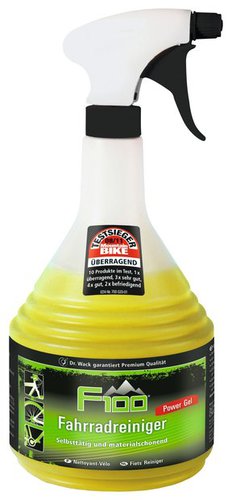 Der F100 Fahrradreiniger mit Power-Gel von Dr. Wack ist für die Intensiv-Reinigung das ideale Produkt! Selbst die hartnäckigsten Verschmutzungen sind für diesen Reiniger kein Thema. Die Anwendung des F100 Fahrradreinigers hinterlässt keine Rückstände und kann für die Kettenreinigung und auch für die Pflege anderer Mattlacke unbedenklich eingesetzt werden. Oberflächen wie z. B. Aluminium, Chrom, Carbon und eloxierte Teile werden durch den F100 Fahrradreiniger wirksam und materialverträglich geschützt. Dieser Reiniger arbeitet säurefrei und ist biologisch abbaubar. Anwendung:Du sprühst das ganze Fahrrad mit dem F100 Fahrradreiniger ein, lässt es ca. 5 -10 Minuten einwirken und spülst es danach mit einem starken Wasserstrahl (kein Hochdruck!) ab. Sollte es sich um sehr hartnäckige Verschmutzungen handeln, z. B. Kettenfett, dann bitte bis 30 Minuten das Produkt einwirken lassen. Achte beim Abspülen bitte darauf, dass keine Schaumbildung auf den Teilen mehr sichtbar ist. Bitte nicht in der prallen Sonne anwenden und auch darauf achten, den F100 Kettenreiniger nicht auf stark erhitzte Oberflächen aufsprühen. Teile aus hochglanzpoliertem unlackiertem Aluminium dürfen nicht mit dem Produkt behandelt werden. Gesetzliche Hinweise: Entsorgung des Inhalts / des Behälters gemäß den örtlichen / regionalen / nationalen/ internationalen Vorschriften. Die Marke F100Die Marke F100 wird von der Dr. O.K. Wack Chemie GmbH hergestellt. Innerhalb vier Jahrzehnten entwickelte sich das Unternehmen mit verschiedenen Weltneuheiten und speziellen Problemlösungen zu einem der führenden Hersteller auf den Gebieten der Premiumpflege für KFZ- und Zweirad. Zahlreiche Testsiege und Auszeichnungen bestätigen die hochwertige Qualität der F100-Produkte. F100 Fahrradreiniger Spritzflasche - 100ml, Dr. Wack