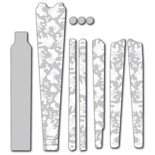 Speziell für Schotter-, Abenteuer-, Straßen- und Bikepacking-Fahrer entwickelt.Rahmenschutz-Kit mit aufgedrucktem Tarnmuster. Der Protektor ist transparent, so dass Sie immer noch die Farbe Ihres Fahrrads darunter sehen können.Schützt vor Klett-/Gepäckgurten, Kabelabrieb und Stein-/Felsschäden.Merkmale:Zum Schutz von Oberrohr, Unterrohr, Gabel, Sitzstreben und Kettenstrebe des Rahmens mit insgesamt 12 Teilen.Gabelschutzabschnitte sind ideal für diejenigen, die Lasten auf der Gabel transportieren.3 zusätzliche runde Patches für Kabelschutz oder KlettbandschutzBeseitigen Sie Farbsplitter und Schrammen in allen geschützten Bereichen.
