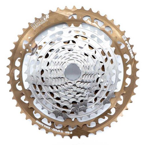 Die E-THIRTEEN Helix Race Kassette in Nickel / Bronze ist ein Premium-Fahrradteil, das für ernsthafte Radfahrer entwickelt wurde. Diese Kassette verfügt über einen 12-Gang-Bereich, der optimale Gangverhältnisse sowohl für Aufstiege als auch für schnelle Abfahrten bietet. Diese Kassette wurde mit extremer Präzision hergestellt und besteht aus hochwertigem Nickel und Bronze, das eine beeindruckende Haltbarkeit und Langlebigkeit bietet. Darüber hinaus ermöglicht ihr einzigartiges Design ein sanftes und präzises Schalten während der Fahrt, sodass Sie jedes Gelände sicher bewältigen können. Die Kassette verfügt über ein innovatives Dreiteil-Design, das leicht und robust ist. Die kleineren Ritzel bestehen aus hochwertigem Stahl, während die größeren Ritzel Aluminiumlegierungen für eine größere Effizienz verwenden. Diese Konstruktion liefert eine Kassette, die sowohl stark als auch leicht ist und die Leistung Ihres Fahrrads insgesamt verbessert. Diese E-THIRTEEN Helix Race Kassette ist mit einer Vielzahl von Fahrradmodellen kompatibel und ein fantastischer Upgrade für jeden Radfahrer, der seine Fahrleistung verbessern möchte. Ob Sie ein professioneller Fahrer oder ein Amateur-Enthusiast sind, diese Kassette wird Ihre Radfahrerfahrung aufwerten.