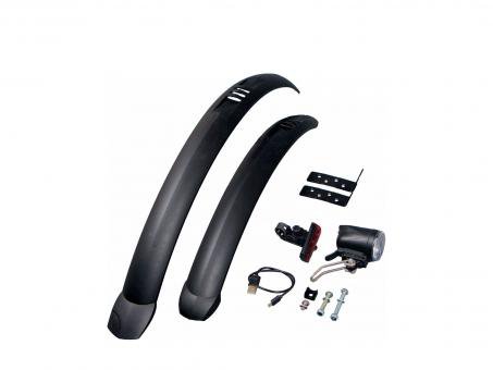 Mit dem Eightshot STVZO-Kit rüstest du dein Eightshot Kindermountainbike verkehrssicher und alltagstauglich auf., Die Ladung der Akku-Leuchten erfolgt dabei über das mitgelieferte USB-Kabel.