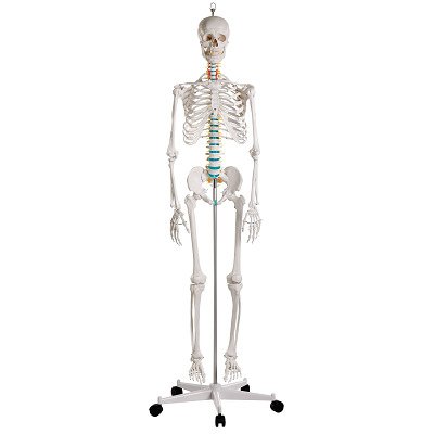 Erler Zimmer Skelettmodell Schulskelett Oscar : Äußerst widerstandsfähig - Das Erler Zimmer Skelettmodell Schulskelett Oscar überzeugt durch seine ausgezeichnete Qualität – das anatomische Modell wird aus haltbarem und unzerbrechlichen Kunststoff gefertigt. Dadurch ist es besonders für die Verwendung in der Schule geeignet. - Genaue Anatomie - Beim Schulskelett Oscar entsprechen die 200 Skelettknochen in Größe und Gewicht echten menschlichen Knochen. Wichtige Strukturen und Foramina sind korrekt wiedergegeben. - Realistische Bewegbarkeit und abnehmbare Gliedmaßen - Beim Erler Zimmer Skelettmodell Schulskelett Oscar werden Schulter, Knie und Hüften über flexible Gummigelenke bewegt. Die Bewegungen sind erheblich realistischer als bei anderen, vergleichbaren Modellen. Zur detaillierten anatomischen Veranschaulichung können beim Schulskelett Oscar die Gliedmaßen schnell und einfach abgenommen und anschließend wieder angebracht werden. Dank es Schnellverschlusses ist dies besonders einfach. Das Skelett wird mit einem stabilen 5-strahligem Rollenstativ geliefert. Der Ständer ist robust und leichtgängig. Nach dem Gebrauch können Sie das Skelett einfach in einem Lehrmittelraum rollen und platzsparend verstauen. Das Skelett können Sie abnehmen. Mittels einer Aufhängevorrichtung lässt sich das Skelett am Stativ oder an der Decke befestigen. - Erler Zimmer Skelettmodell Schulskelett Oscar mit idealisiertem Schädel - Mit dreiteiligem, digitalisiertem Schädel, der der Standardanatomie und der europäischen Durchschnittsgröße entspricht. Alle wichtigen Strukturen wie Fissuren, Foramina und Processus sind vorhanden. Den Schädel können Sie in Schädelbasis, Unterkiefer und Schädeldach zerlegen. Besonders praktisch: Das Schädeldach wird durch Magnete gehalten und ist an der Schädelbasis ausgerichtet. Die separat gefertigten Zähne sind einzeln im Kiefer eingesetzt. - Produktdetails: - Größe: 178 cm mit Stativ - Gewicht: 9 kg - Anatomisch korrekte Reproduktion eines männlichen Erwachsenen - Die annähernd 200 Knochen entsprechen in Größe und Gewicht dem menschlichen Körper - Gliedmaßen dank Schnellverschlüssen leicht abnehmbar und montierbar - Mit realistisch beweglichen Gummigelenken - Mit 5-strahliges Rollenstativ - Mit Aufhängeöse für Stativ- und Deckenbefestigung - Idealisierter dreiteiliger Schädel - Separat gefertigte Zähne – im Kiefer eingesetzt