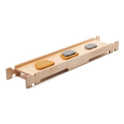 Erzi Balancierbretter Kurz: robuste Konstruktion - Die Balancierbretter Kurz von Erzi bestehen aus Birkensperrholz. An den Enden befinden sich Wangen, mit denen Sie das Balancier-Brett in andere Elemente einhängen, wie etwa in Einhängesprossen (bis 35 mm) oder Wippen. - Unterschiedliche Oberflächen für die haptische Wahrnehmung - Hühnerleiter: Eingelassene blaue Kunststoffsprossen an der Oberfläche bieten taktile Stimulation und trainieren das Fußgewölbe und den Gleichgewichtssinn. - Feldstein: Die Feldsteine auf der Oberfläche unterscheiden sich in Form und Größe. Barfüßiges Balancieren ist hier ein besonderes Erlebnis für die Füße und das Balancieren an sich ist herausfordernder. - Materialmix: Die Materialien auf der Strecke verfügen über unterschiedliche Strukturen, die mit Händen und Füßen gefühlt werden dürfen. - Produktdetails: - Material: Birkensperrholz, Kunststoff - Maße (LxBxH): 25x115x90 cm - Gewicht: ca. 4,8 kg - Belastbar bis 100 kg - Maximale Aufbauhöhe (Sprossenwand, Sportbox): 60 cm - Geeignet zum Einhängen in: - Den Sprungkasten Kita - Großfeld-Sprossenwände - Alle Elemente mit einem Sprossendurchmesser von bis zu 35 mm - Erzi Wippe „Rocky Rocker“