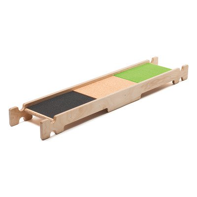 Erzi Balancierbretter Kurz: robuste Konstruktion - Die Balancierbretter Kurz von Erzi bestehen aus Birkensperrholz. An den Enden befinden sich Wangen, mit denen Sie das Balancier-Brett in andere Elemente einhängen, wie etwa in Einhängesprossen (bis 35 mm) oder Wippen. - Unterschiedliche Oberflächen für die haptische Wahrnehmung - Hühnerleiter: Eingelassene blaue Kunststoffsprossen an der Oberfläche bieten taktile Stimulation und trainieren das Fußgewölbe und den Gleichgewichtssinn. - Feldstein: Die Feldsteine auf der Oberfläche unterscheiden sich in Form und Größe. Barfüßiges Balancieren ist hier ein besonderes Erlebnis für die Füße und das Balancieren an sich ist herausfordernder. - Materialmix: Die Materialien auf der Strecke verfügen über unterschiedliche Strukturen, die mit Händen und Füßen gefühlt werden dürfen. - Produktdetails: - Material: Birkensperrholz, Kunststoff - Maße (LxBxH): 25x115x90 cm - Gewicht: ca. 4,8 kg - Belastbar bis 100 kg - Maximale Aufbauhöhe (Sprossenwand, Sportbox): 60 cm - Geeignet zum Einhängen in: - Den Sprungkasten Kita - Großfeld-Sprossenwände - Alle Elemente mit einem Sprossendurchmesser von bis zu 35 mm - Erzi Wippe „Rocky Rocker“