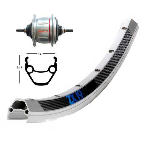 Rw 28x1,75 OH Coast.Br.Shim 8 Sp.36h.Exal Zx 19 Silver Niro Speichenfelge:28 x 1,75 Exal Zx 19 36 Loch, Aluminium, Silber matt Etrto 622-19 mit Ösen Ventilloch 6,5 mm Nabe:Hinterrad:Silberne Beilage.8-fach Nabe SG-C60018 ohne Rücktrittbremse VR 135mm Speichen Niro 2.0/2.34mm.
