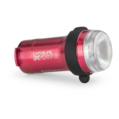 Exposure BoostR Rear Light with DayBrightThe Boost R, taking the massively prevalent form of the Trace R and designing a rear light with twice the burn times with just a 10-gram increase in weight. This rear end guardian comes with a high-capacity Lithium-Ion battery it produces both a powerful output and long burn times. Featuring DayBright pulse pattern to cut through the distractions of busy roads. With long burn times, the Boost R is the perfect partner for your weekly commute or packing adventure, both day and night.Features: Material: Anodised 6063 Aluminium LEDs: 1 x Red XPE-R IP Rating: IP65 Max Lumens: 80 Battery: 1400 mAh Li-Ion Runtime: 6 - 48 Hours Charge Time: 3 Burntime: Min 6 hours; Max 48 hrs (FL) Battery Capacity: 3500 mAh Li-ion Dimensions (mm): Length: 66: Head: 28; Back: 22 In The Box: Boost-R Daybright, Seatpost Mount, Micro USB Charge Cable, QS Guide Weight: 45gTechnologies: OMS: Various programs in the lights can easily be selected to offer a choice of run times and modes so you can find the right one for your ride, be it an all-night adventure or an intense blast. ITM: Patented circuitry within the light will reduce power to the LEDs, if they go beyond the optimum temperature, keeping the light as efficient as possible to maximise output and battery capacity. Once the light has cooled, the power is automatically restored. Fuel Gauge: Using a traffic light system remaining runtime is easily monitored at a glance so you're not caught out. The colour feedback is also used for mode selection, before defaulting back to runtime. Day Bright: Bespoke pulse pattern designed for daylight use which is more conspicuous than a regular pulse and visible over a kilometre away, even in the brightest conditions. DayBright mode will you noticed. Be Seen be Safe.Manufacturer's Part Number: EXPBOOSTRDBBuy Exposure Bike Accessories from Chain Reaction Cycles, the World's Largest Online Bike Store.