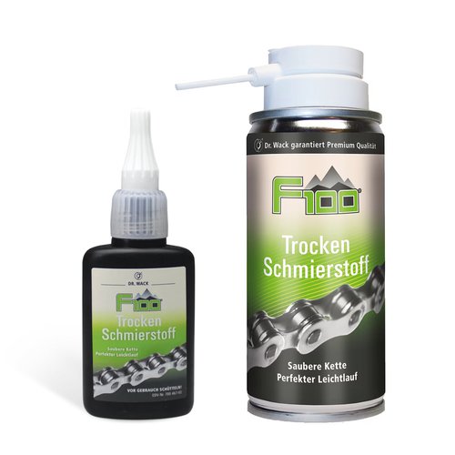 Der F100 Trocken-Schmierstoff verringert die Reibung und sorgt für extreme Leichtgängigkeit aller beweglichen Teile... weitere Infos im ROSE Bikes Online-Shop!