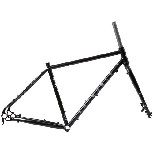 Der Weekender ist ideal für Reisen geeignet. Obwohl er sich leicht als Wochentagspendler auf holprigen Stadtstraßen bewährt, kommt er erst so richtig zur Geltung, wenn man ihn auf eine lange Reise mitnimmt.Der Weekender mit seinem 100% 4130 Chromoly-Rahmen und Gabeln bewältigt alles, was man ihm entgegenwirft. Er ist mit 27,5 x 2,0 Reifen ausgestattet und bietet auch Platz für 700c-Räder, falls Sie einmal etwas ändern möchten.*Rahmen- und Gabel-Kit erhältlich in den Größen Small, Medium, Large und X-Large.*Bitte beachten Sie, dass Weekender in der Größe Small nicht mit 700c-Rädern kompatibel sind.GrößenwahlKlein: 5´2 bis 5´7 KörpergrößeMittel: 5´7 bis 5´10 KörpergrößeGroß: 5´9 bis 6´1 KörpergrößeX-Groß: 6´1 und mehr KörpergrößeDie Größenangaben sind ungefähre Richtwerte. Bitte konsultieren Sie Ihren örtlichen Fahrradladen, um die richtige Passform zu erhalten.Geometrie:- Größe S (52cm) M (55cm) L (58cm) XL (58cm)- Oberrohr (effektiv) 523mm 545mm 579mm 602cm- Oberrohr (tatsächlich) 505mm 532mm 559mm 585mm- Sitzrohrwinkel 74° 73° 73° 73°- Steuerrohrlänge 120mm 122mm 146mm 167mm- Steuerrohrwinkel 70° 71° 71,5° 71,5°- Kettenstrebenlänge 415mm 440mm 440mm 440mm- Radstand 1005mm 1037mm 1058mm 1081mm- Überstand 745mm 765mm 800mm 830mm- Stack 517mm 565mm 589mm 609mm- Reach 373mm 380mm 398mm 414mm- Gabel Länge 390mm 416mm 416mm 416mm- Gabel Offset 50mm 50mm 50mm 50mm- BB Drop 54mm 72mm 72mm 72mm- Bremssattel-Abstand 135mm 135mm 135mm 135mm- BB Typ BSA 68 BSA 68 BSA 68 BSA 68- Sattelstütze 27,2mm 27,2mm 27,2mm 27,2mm- Sattelklemme 30mm 30mm 30mm 30mm- Max. Reifenbreite 47mm 54mm 54mm 54mm- Radgröße 27,5 27,5 27,5 27,5