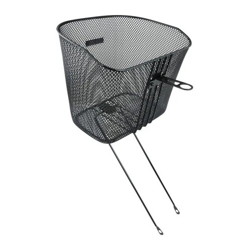 mit Halterung und Streben in schwarz Montage unter der Lenkerstange (Steuersatzmutter) zwei Halterungen 25,4 und 28,6 mm und Streben an der Vorderradnabenachse zu befestigen Länge: 260 mm x Breite: 350 mm x Höhe: 250 mm maximale Belastung: 8 kg Material: Fe-Stahl. dickes Drahtgeflecht. schwarz Gewicht: 895 g In 10 Min. montiert