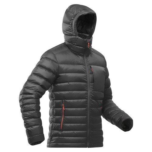 Eine warme Daunenjacke mit Kapuze für Trekkingtouren bei kalten Temperaturen bis -10 °C.