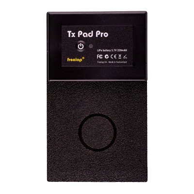 Freelap Transmitter Tx Pad Pro: präziser Chip-Timer für schnelle Starts - Der Freelap Transmitter Tx Pad Pro ist eine einfach zu bedienende Lösung für Athlet:innen, die Wert auf schnelle und genaue Zeitmessungen ihres Starts legen. Der Sender wird einfach an der Startlinie auf den Boden gelegt und löst den Chip-Timer sofort aus, sobald der Athlet oder die Athletin den Finger vom Sender nehmen. Er eignet sich sowohl für Blockstarts als auch 3-Punkt-Starts. Mit seinem kompakten Design und der Möglichkeit zur Wiederaufladung bietet der Sender optimale Flexibilität und Benutzungsfreundlichkeit. - So funktioniert es: - Um das Gerät einzuschalten, drücken Sie die Einschalttaste für 1 Sekunde (die grüne LED leuchtet auf). Anschließend platzieren Sie das Tx Pad Pro auf der Startlinie. Nehmen Sie dann Ihre Startposition ein und halten Sie den Finger auf der Startzone des Senders gedrückt. Sobald Sie Ihren Finger schnell entfernen, startet das Rennen. - Produktdetails: - Kompatibilität: FxChip, FxChip BLE - Sender mit 1 Code: START - Erfassungsbereich: 1,5 m - Mindestzeit zwischen 2 Sendern: 0,7 Sek. - Genauigkeit: 1/100 einer Sek. - Batterie: 3,7 V 320 mAH LiPo-Akku, automatische Abschaltung nach 12 Std. - Batterielebensdauer: ca. 300 Std. - Wasserdichtigkeit: IP67 - Betriebstemperaturen: -20 °C bis +50 °C - Maße (LxBxH): 170x100x15/3 mm - Maße der Startzone (ø): 30 mm - Gewicht: 130 g