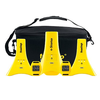 Freelap Zeitmesssystem-Set Track & Field - 212 – exakte Zeiterfassung und fortschrittliche Daten-Analyse - Das Freelap Zeitmesssystem-Set Track & Field - 212 ermöglicht die automatisierte Zeitmessung beim Laufen. Strecken-Sender geben dabei ein elektromagnetisches Signal an den Transponder der Laufenden. Die erfassten Daten gelangen direkt in die MyFreelap-App auf Ihrem Mobilgerät. - So funktioniert es - An der Startlinie positionieren Sie den e-Starter. Die jeweiligen Athlet:innen machen sich bereit und drücken den Startknopf. Sie beginnen zu laufen, wenn das Schussgeräusch ertönt (zwischen 1,5 und 2,5 Sek. nach dem SET-Befehl). Bevor der Lauf beginnt, machen Sie Folgendes: Am Hosenbund der Laufenden wird der Transponder mittels Clip befestigt. 1 Transmitter Tx Junior Pro positionieren Sie auf der Strecke für Zwischenzeiten und 1 Transmitter stellen Sie am Ziel auf. Diese Strecken-Transmitter erkennt der am Hosenbund befestigte Transponder der Läufer:innen beim Vorbeilaufen. Per Bluetooth übermittelt dieser die Zeit- und Strecken-Daten an Ihre kostenlose MyFreelap-App. - Set-Bestandteile: - 2 Freelap Transponder FxChip BLE oder FxMotion - 2 Freelap Transmitter Tx Junior Pro - 1 Freelap Transmitter e-Starter(automatische Startpistole) - 1 Freelap Transporttasche Satchel Bag Small - 1 Freelap Ladestation USB-C - MyFreelap-App (zum kostenlosen Download) - Durch zusätzliche Freelap-Produkte flexibel erweiterbar - Freelap Bluetooth Transponder FxChip BLE: - Material: Kunststoff (Acrylnitril-Butadien-Styrol-Copolymerisat) - Größe: 3,6x4,8x1,4 cm - Gewicht: 17 g - Farbe: Gelb-Schwarz - Wasser-Resistenz: 5 ATM - Inkl. Befestigungsklammer - Inkl. Akku (Lebensdauer 100 Std.) - Ladezeit: 5 Std. - Messgenauigkeit: 2/100 Sek. - Freelap Transponder FxMotion: - Material: Kunststoff (Acrylnitril-Butadien-Styrol-Copolymerisat) - Größe: 3,6x4,8x1,4 cm - Gewicht: 17 g - Farbe: Gelb-Schwarz - Wasser-Resistenz: 5 ATM - Inkl. Befestigungsklammer - Inkl. Akku, aufladbar - Ladezeit: 5 Std. - Akkulebensdauer: 100 Std. im Betrieb - Temporärer Speicher von 10 Runden (Strecke darf höchstens 11 Sender enthalten) - Interner Speicher, wodurch sich die Daten auch später an Ihr Endgerät übertragen lassen - Technologie: Bluetooth smart (BLE) - Messgenauigkeit: 2/100 Sek. - Freelap Transmitter Tx Junior Pro: - Material: Kunststoff (Acrylnitril-Butadien-Styrol-Copolymerisat) - Größe: 11,5x11,5x15,0 cm - Gewicht: 220 g - Farbe: Gelb - Wasser-Resistenz: 3 ATM - Inkl. 2x LR6 (AA) Batterie (Lebensdauer 300 Std.) - Automatische Abschaltung nach 12 Std. - Genauigkeit: 2/100 Sek. - Erfassungsfeld: 1,5 m - Freelap Transmitter e-Starter: - Material: Kunststoff - Maße (LxBxH): 155x144x134 mm - Gewicht inkl. Batterien: 250 g - Farbe: Gelb - Inkl. USB-Ladekabel - Sender mit 1 Code: START - Erfassungsfeld: 1,5 m (linke/rechte Seite) - Mindestzeit zwischen 2 Sendern: 0,7 Sek. - Genauigkeit: 1/100 Sek. - Batterien: 3,7V 1Ah LiPo Akku, automatische Abschaltung nach 1h - Akkulaufzeit: 50 Std. - Wasserdichtigkeit: IP67 - Betriebstemperaturen: -20 °C bis +50 °C - Freelap Transporttasche Satchel Bag Small: - Material: Polyester, Samt - Maße (LxBxH): 26x17x12 cm - Gewicht: ca. 200 g - Farbe: Schwarz mit gelben Logo