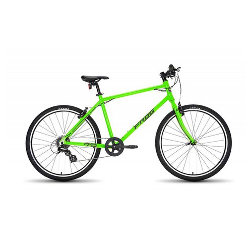 HauptspezifikationenRahmen: 6061 T6 wärmebehandelte Aluminiumlegierung, Sitzrohr 18 (465 mm)Gabel: 6061 T6 wärmebehandelte AluminiumlegierungGruppeHinteres Schaltwerk: Shimano Altus, M310, 8-fachSchalthebel: Frogfittechnology® jugendgerechte 8-fach-Schalthebel mit kurzem HebelwegKurbeln: Frog Bikes patentierte, 102 mm, Aluminium-Kurbeln mit geradem Arm, 32T-Kettenblatt, schwarzKassette: 8-fach, 11-32TVorderbremse: Tektro 837 Al, Aluminium, Linear-PullHinterbremse: Tektro 837 Al, Aluminium, Linear-PullKette: Kmc, 8-fachInnenlager: Neco, Vierkantkonus, 68/107.5, PatronenlagerRäderFelgen: Aluminium, 26x1.5, doppelwandig, bearbeitete BremsflächeReifen: Kenda K1047, 26x1.5, Hybrid, (ETRTO/ISO: 38-559)KomponentenLenker: Aluminium, Flat Bar, 540 mmVorbau: Frog Bikes Aluminium 1 1/8, 60 mm, 4-Schrauben-KlemmungSattel: Frog Bikes kinderspezifischer Sattel (mittel), StahlstrebenGewicht: 10 kg (inkl. Pedale)Pedale: Frog Bikes umweltfreundliches Reishülsen-Verbundpedal, mit Reflektoren, 9/16