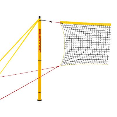Funtec Beachtennisnetz Freizeit: Leichtgewicht für den mobilen Einsatz - Mit dem Funtec Beachtennisnetz Freizeit kann das nächste Beachtennis oder -volleyballmatch sofort beginnen. Das knotenlose Sportnetz verfügt an der Oberkante über ein Einfassband. Die Seiten und Unterkante besitzen dagegen eine starke Kettelnaht. Zur Netz-Zentrierung und zum Spannen sind an der Ober- und Unterkante Leinen eingearbeitet. Auch seitlich sind am Netz Spannleinen angebracht. Bitte beachten Sie, dass sich dieses Netz nicht für den Einsatz an stationären Netzanlagen mit Spannvorrichtungen eignet. - Produktdetails: - Material (Spannseil): Textil - Netzhöhe: 1 m - Netzstärke: ca. 2,3 mm - Maschenweite 4,5 cm - Länge Spannseil: 9,4 m - Breite (Einfassband): 5 cm - Gewicht: 1,5 kg - Farbe: Schwarz-Gelb