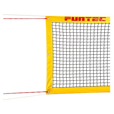 Funtec Beachtennisnetz Pro – die passende Ergänzung für Ihr stationäres Beachtennisfeld - Das Funtec Beachtennisnetz Pro verfügt an den Seiten über eingearbeitete Glasfaser-Rundstäbe. Diese machen das Netz besonders robust und sorgen für eine bestmögliche, rechteckige Netzgeometrie. Als Hauptspannseil kommt ein 10,4 m langes Kevlarseil zum Einsatz, das speziell für Feldgrößen von 16x8 m geeignet ist. Die Isilink-Spannleinen ermöglichen darüber hinaus eine komfortable Befestigung. Die ringsum reichende 8 cm breite Netzkanteneinfassung sorgt zudem dafür, dass das Netz im gespannten Zustand seine Form beibehält, bestens sichtbar und vor Verschleiß geschützt ist. - Produktdetails: - Netzhöhe: 1 m - Netzstärke: 2,3 mm - Maschenweite: 4,5 cm - Länge Spannseil: 10,4 m - Breite (Einfassband): 8 cm - Gewicht: 3 kg - Farbe: Schwarz-Gelb