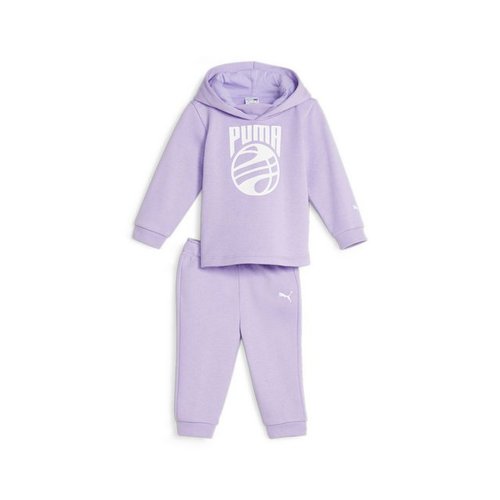 Lass die Basketballträume deines kleinen Lieblings wahr werden in diesem Set aus der PUMA Minicats Kollektion. Bestehend aus einem Hoodie mit smartem Basketball-Print sowie einer Hose eignet es sich ideal für die ersten Abenteuer ? in der Welt und später auf dem Feld. Hergestellt aus mindestens 20 % recyceltem Material für den Schritt in eine bessere Zukunft.Die Baumwolle in den PUMA Produkten stammt von Farmen, die sich auf nachhaltige Landwirtschaft wie Wassermanagement und Schutz der Bodenqualität konzentrieren. Weitere Informationen: PUMA.com/FOREVER BETTERKapuze mit Futter aus Single-JerseyGerippte Abschlüsse am HoodiePUMA Grafikprint in BrusthöheElastischer Bund mit Tunnelzug innen an der HoseRippbündchen an der HoseGesäßtaschen an der Hose