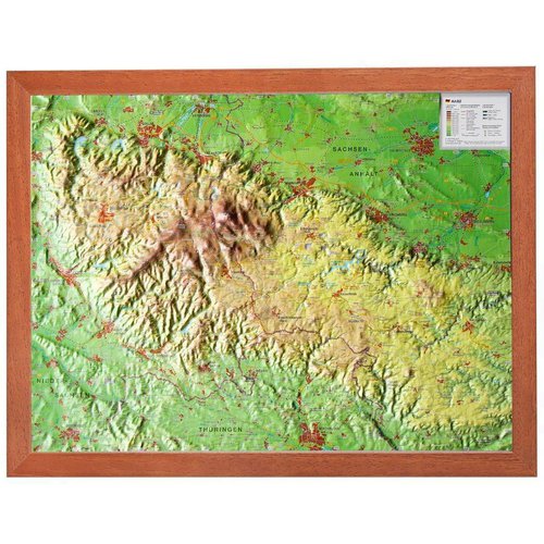Relief Harz 1:200.000 mit Holzrahmen – Tiefgezogenes Kunststoffrelief