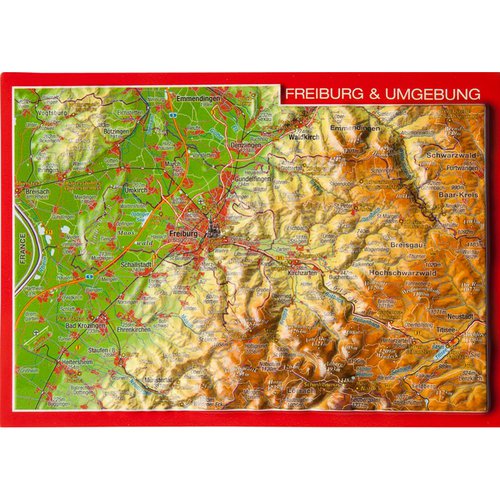 Detailreiche 3D Reliefpostkarte über Freiburg & Umgebung