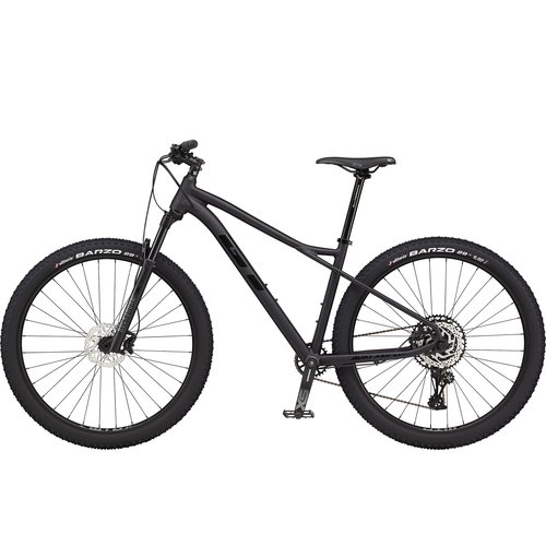 GT Avalanche Expert 29 Zoll Mountainbike Hardtail MTB Fahrrad 29" Mountain Bike Das GT Avalanche Expert 29 Zoll Hardtail Mountainbike eignet sich für Biker, die gerade erst anfangen, jedoch große Ziele haben - dieses vielseitige MTB Fahrrad kann einfach alles! Der Triple Triangle-Aluminiumrahmen ist besonders leicht, robust und langlebig und bringt eine aggressive Geometrie mit, die für Berge absolut gemacht ist. Dabei vermittelt das Hardtail durch seine saubere Balance dennoch ein perfektes Fahrgefühl. Die hochwertige RockShox Recon Silver RL Federgabel bringt luftgefederte 120 mm Federweg mit. Mit dem leichten, 740 mm breiten Aluminiumlenker hast du dein Bike jederzeit im Griff, während die Lenkerkröpfung von 9° effektiv deine Gelenke schont. Mit Komponenten von SRAM im 12 Gang Kettenantrieb ist das Avalanche Expert überragend ausgestattet. Die SRAM Eagle-Schaltungsteile sind sehr leicht, sehr exakt und extrem robust und langlebig. Die Perfektion liegt im Detail: Das Kettenblatt der SRAM SX Eagle Power Spline Kurbelgarnitur besitzt perfekt geometrisch geformte Zähne. Dadurch wird die Reibung der Kette auf dem Kettenblatt auf ein absolutes Minimum reduziert. Die Folge sind minimierte Geräuschentwicklung, hohe Laufruhe, weniger Vibration und weniger Verschleiß der Kette. Da die Kette auf diesem Blatt besonders ruhig läuft, werden die Schaltvorgänge noch geschmeidiger und präziser. Für Sicherheit und absolute Kontrolle sorgen die hochwertigen hydraulischen Scheibenbremsen des Herstellers Shimano. Shimano verwendet als Bremsmedium Mineralöl, das im Gegensatz zu Synthetikölen nicht toxisch oder korrosiv und deutlich wartungsämer ist - es muss erst dann ein Ölwechsel erfolgen, wenn die Bremsleistung spürbar nachlässt. Zudem sind Scheibenbremsen besonders geeignet für den Einsatz am Mountainbike und abseits befestigter Straßen, da ihre Bremskraft nicht wie bei Felgenbremsen durch Nässe oder Verschmutzung beeinflusst wird. Egal wo du unterwegs bist - diese Bremsen greifen bissig und präzise zu! Mit 29 Zoll Laufradgröße kommst du mit dem Avalanche Expert schnell auf ordentlich Speed. Die großen Räder überwinden Hindernisse einfacher, sind besonders laufruhig und decken vor allem große Personen optisch gut ab. Auf den Aluminium Doublewallfelgen sitzen Vittoria Barzo Reifen mit 2,25 Zoll Breite, deren Profil hohe Wendigkeit bei exzellenter Stabilität garantiert. Hergestellt wurden sie aus Graphene 2.0 Gummimischung, die nicht nur für Geschwindigkeit, Grip und Haltbarkeit steht, sondern auch besonders viel Grip bei Nässe bietet. Mit drei Rahmengrößen eignet sich das Avalanche Expert 29 Zoll für Fahrer mit einer Körpergröße zwischen 165 cm und 190 cm. Damit es ohne lange Bastelei gleich losgehen kann, werden alle Fahrräder bereits zu mindestens 85 % vormontiert ausgeliefert. Achtung: Wir weisen darauf hin, dass dieses Fahrrad nicht mit Beleuchtung ausgestattet und damit nicht StVZO-konform ist. Es wird empfohlen, eine entsprechende Nachrüstung vorzunehmen. Technische Daten: Hersteller: GT Modell: Avalanche Expert Farbe: satin black/gloss black Gänge: 12 Rahmengröße: 44 cm, 48 cm, 52 cm Laufradgröße: 29 Zoll Rahmen: GT Triple Triangle Aluminium Slopingrahmen mit flexenden Sitzstreben Gabel: RockShox Recon Silver RL Federgabel mit 120 mm Federweg und Remote Lockout Steuersatz: halbintegriert, abgedichtet, konifiziert Vorbau: GT All Terra Aluminium, Durchmesser: 31,8 mm, Winkel: 7°, Länge: 80 mm Lenker: GT All Terra Aluminium Riser Bar, Breite: 740 mm, Rise: 15 mm, Sweep: 9° Griffe: GT Statement Schalthebel: SRAM SX Eagle Schalthebel Bremshebel: Shimano BL-MT400 Aluminium Dreifingertyp Schaltwerk: SRAM SX Eagle 12-fach Kurbelgarnitur: SRAM SX Eagle Power Spline einfach, 32 Zähne Kassette: SRAM Eagle 12-fach, 11-50 Zähne Kette: SRAM SX Eagle Innenlager: Truvativ Power Spline Bremsen: Shimano BR-MT400 mit Bremsscheiben SM-RT10 160/160 mm hydraulische Scheibenbremsen Reifen: Vittoria Barzo 29" x 2,25" Felgen: WTB ST i25 TCS 2.0, 32 Loch Naben: Shimano MT400/MT200 Speichen: 14G, rostfreier Stahl, 32 Stück Pedale: GT Slim Line Plattformpedale Sattel: WTB Silverado Sport Sattelstütze: GT All Terra Aluminium Patentsattelstütze, Durchmesser: 30,9 mm empfohlene Körpergröße: RH 44: 165 - 180 cm RH 48: 170 - 190 cm zulässiges Gesamtgewicht: 120 kg Gewicht: 15 kg Lieferzustand: 85 % vormontiert Lieferumfang: 1 Fahrrad, Zubehör (Reflektoren, Glocke)