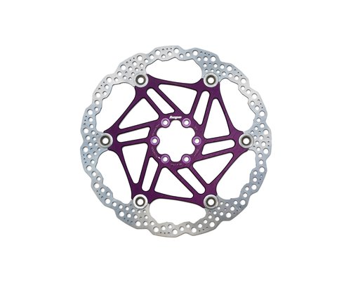 Hope FLOATING DISC - 200MM 6 BOLT-FLOAT-PURPLE - Bremsscheibe: Unsere schwimmend gelagerten Scheiben sind mit Größerer Bremsfläche überarbeitet worden, damit sie auch mit den Bremszangen anderer Hersteller kombiniert werden können. Die Bremsfläche aus Spezialstahl wird zum Alustern vernietet. Der Alustern darf sich dank dieser Vernietung bei Hitze ausdehnen und bei der Abkühlung wieder zusammenziehen und wird auf dieser Art bei solchen Temperaturschwankungen nicht verformt. Gewicht 146g (180mmer Scheibe)