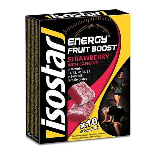 Was ist Isostar Fruit Boost? Isostar Fruit Boost ist ein energiesteigenderes Produkt in der Geschmacksrichtung Erdbeere, das sorgf?ltig ausgew?hlte Kohlenhydrate aus Fr?chten und verschiedenen Zuckerarten enth?lt. Diese werden schnell in Energie umgewandelt und bieten eine ideale Energiequelle vor und w?hrend anstrengender Aktivit?ten. Die fruchtigen Gummis mit Erdbeergeschmack sind besonders leicht zu kauen und einzeln in Folie verpackt, was sie praktisch f?r unterwegs macht. Die nat?rliche F?rbung wird durch das enthaltene Erdbeerp?ree und -saft erzielt, w?hrend die zugesetzten B-Vitamine den Stoffwechsel unterst?tzen. Zus?tzlich kann das enthaltene Koffein kurzfristig die Leistung steigern. Die wichtigsten Fakten im ?berblick Energiegums in Erdbeergeschmack Schnelle Energiequelle aus ausgew?hlten Kohlenhydraten Zus?tzliche Unterst?tzung des Stoffwechsels durch B-Vitamine Einzeln verpackt und leicht zu ?ffnen: perfekt f?r unterwegs F?r wen sind die Fruit Boost Gelees empfehlenswert? Isostar Fruit Boost ist ideal f?r alle, die vor oder w?hrend k?rperlicher Anstrengung eine schnelle Energiequelle ben?tigen. Sportler, Wanderer, L?ufer und aktive Menschen aller Art k?nnen von diesem praktischen und schmackhaften Produkt profitieren.