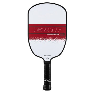Joola Pickleball-Schläger Graf Champion 12: - Der Joola Pickleball-Schläger Graf Champion 12 soll Anfänger:innen den Einstieg so leicht wie möglich machen. Die Schlägerform ist dabei von der markanten Tennisschläger-Optik von Andre Agassi inspiriert. Dadurch verteilt sich der Sweetspot über die gesamte Schlägerfläche bis zu den oberen Kanten und unteren Ecken. Zusätzlich reduzieren die Waben des Honeycomb-Kerns die Vibrationen am Schläger nach dem Ballkontakt. Die Oberfläche des Rackets ist sandgestrahlt und ermöglicht so auch scharfe Spins sowie eine variantenreiche Spielweise. Für ein anhaltend komfortables Spielgefühl sorgt zudem der ergonomische Feel-Tec Pure Griff – auch bei schweißtreibender Pickleball-Action. - Produktdetails: - Material (Oberfläche): Glasfaser - Material (Kern): Polypropylen (PP) - Material (Griff): Ethylenvinylacetat (EVA) - Maße (LxB): 41,91x19,05 cm - Stärke (Kern): 1,2 cm - Grifflänge: 12 cm - Griffumfang: 10 cm - Gewicht: 232,5 g - Farbe: Weiß-Rot-Schwarz