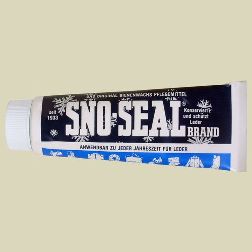 Die Lebensdauer eines Schuhs hängt auch von der richtigen Pflege ab. Das Sno-Seal ist ein geruchsneutrales Pflegemittel mit Bienenwachs-Anteil für alle Glattleder. Der Schuh wird wasserdicht, bleibt dabei atmungsaktiv. Sno-Seal macht das Leder geschmeidig und verhindert Faltenbildung. Nach der Behandlung kann das Leder etwas dunkler und glatter werden.