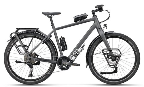 Koga Worldtraveller - off black matt Der Koga Worldtraveller ist gemacht für große Reisen, schwere Lasten und echte Abenteuer. Entwickelt in Zusammenarbeit mit dem Abenteurer Alee Denham, überzeugt dieses Trekkingrad durch maximale Stabilität, hohe Tragfähigkeit und eine kompromisslos robuste Ausstattung. Ob Weltreise, ausgedehnte Bikepacking-Tour oder anspruchsvoller Alltag – der Worldtraveller ist bereit. Herzstück ist der extrem belastbare Aluminiumrahmen mit einem zulässigen Gesamtgewicht von bis zu 180 kg. Der integrierte Heavy-Duty-Gepäckträger sowie der ebenfalls integrierte Lowrider sorgen für hohe Steifigkeit, optimale Lastverteilung und ein ruhiges Fahrverhalten – auch bei voller Beladung. Die breiten 29 Zoll Reifen bieten zusätzlichen Komfort, Grip und Laufruhe auf unterschiedlichsten Untergründen. Für zuverlässigen Vortrieb sorgt die Shimano CUES U6000 Schaltung mit 22 Gängen, die speziell auf Langlebigkeit und hohe Belastung ausgelegt ist. Hydraulische Shimano MT410 Scheibenbremsen gewährleisten dabei sichere und kontrollierte Verzögerung, selbst bei Nässe oder schwerem Gepäck. Die hochwertige Beleuchtungsanlage von Busch & Müller macht den Worldtraveller voll tourentauglich. Extrem belastbares Trekkingrad mit Diamantrahmen Zulässiges Gesamtgewicht bis 180 kg Shimano CUES U6000 Schaltung mit 22 Gängen Integrierter Heavy-Duty-Gepäckträger und Lowrider Hydraulische Shimano MT410 Scheibenbremsen 29 Zoll Laufräder mit breiten Schwalbe Marathon Efficiency Reifen Tourentaugliche Beleuchtung von Busch & Müller Mattes, dezentes Finish in off black matt Der Koga Worldtraveller ist die ideale Wahl für alle, die keine Kompromisse eingehen wollen – ein zuverlässiger Partner für lange Distanzen, schwere Lasten und grenzenlose Freiheit.