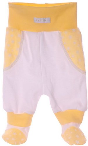 La Bortini Schlupfhose Baby Hose mit Fuß Schlupfhose Babyhose in Weiß Gelb mit Sternchen aus reiner Baumwolle, 44 50 56 62 68 74
