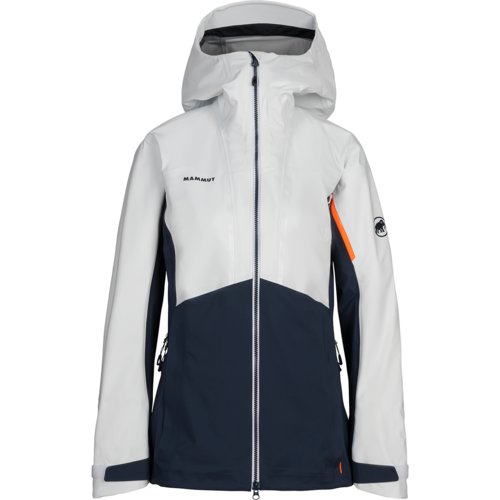 Die Haldigrat HS Hoody Jacke von Mammut ist genau auf die hohen Ansprüche von Freeriderinnen an Material und Funktion abgestimmt. Die feminin leicht antaillierte Hardshell in robuster 3-Lagenverarbeitung bietet mit einer Wassersäule von 20k zuverlässig Schutz vor Wind, Schnee und Eis. Dabei punktet die Jacke auch mit zahlreichen spezifischen Features, die nicht nur die Abfahrt sondern auch den Aufstieg zum nächsten Powderspot zum Vergnügen machen. Die Freeride-Jacke begeistert mit einem ausgezeichneten Tragekomfort, außerdem sind alle Außentaschen natürlich auch mit Rucksack und Klettergurt gut zu erreichen. Im Innern bieten zwei Taschen nässegeschützten Platz für wichtige Kleinigkeiten. Die angeschnittene Kapuze wird mit nur einem Zug horizontal und vertikal fixiert. Über lange Pitzips im Achselbereich und den variablen 2-Wege-Frontreißverschluss kann das Körperklima individuell reguliert werden. Ein Segen bei schweißtreibenden Aufstiegen zum nächsten unverspurten Hang. Und damit gerade an epischen Powdertagen das weiße Gold nicht in die Jacke staubt, dichten Stretchcuffs am Ärmelabschluss und ein abnehmbarer Schneefang mit Andockfunktion für die Hose die Jacke nach außen ab. Ebenso praktisch wie "aufgeräumtes" Detail am Rande: Der Saumkordelzug wird ganz einfach einhändig, von innen reguliert. Und dank "Mammut Connect inside" kann die Mammut Haldigrat HS Hoody Jacke mit kompatiblen Isolationsjacken für maximalen Kälteschutz kombiniert werden.
