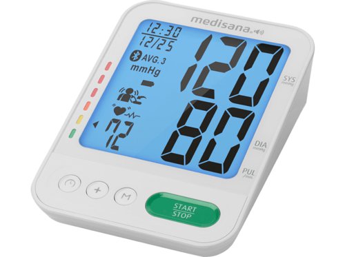 Schnellere Messergebnisse dank Inflating-Technologie – Blutdruck wird bereits während des Aufpumpens der Manschette gemessen Sprachausgabe in Landessprache wählbar: DE, GB, NL, FR, IT, TR Integrierter Bewegungssensor zur Sicherstellung genauer Messergebnisse Hinweis auf Anwendungsfehler Blutdruck-Klassifizierung – Einstufung der Messwerte mit Ampel-Farbskala Anzeige von unregelmäßigem Herzschlag Großes LCD Display Je 120 Speicherplätze für 2 Benutzer Besonders große Oberarmmanschette (23 – 43 cm Armumfang) Inkl. Batterien (4 × 1.5V AAA) Inkl. Aufbewahrungsbeutel