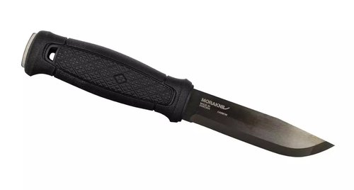 Mit dem Model Garberg Blackblade präsentiert Morakniv ein kraftvolles Outdoormesser, das in vielen herausfordernden Situationen eingesetzt werden kann. Die 3,2 mm dicke Klinge aus Karbonstahl geht über die volle Länge in das Heft über (Erl) und ist mit diesem fest verbunden. Sicherer und haltbarer kann ein Werkzeug nicht verarbeitet sein. Die Scandi-Schliff-Klinge ist mit einer DCL-Beschichtung ausgestattet, welche vor Korrosion und Kratzern schützt und die Reflexion von Licht verhindert. Zudem ist sie einfach nachzuschärfen. Der schwarze Griff aus rutschhemmendem TPE-Kunststoff gewährt einen sicheren Halt beim Arbeiten. Die Köcherscheide aus robustem Polymer Kunststoff mit Gürtelschlaufe ist für Rechts- und Linkshänder gelichermaßen geeignet, da das Messer in jeder Position sicher in der Scheide steckt.
