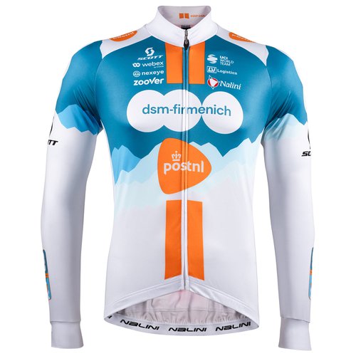 Langarmtrikot des offiziellen Team- Ausrüsters in aktuellem Teamdesign. Das dicht gewebte Material schützt moderat vor kühlem Fahrtwind. Perfekt für die Übergangszeit oder als Baselayer unter einer warmen Winterjacke. aus elastischer, Feuchtigkeit regulierender, windabweisender Funktionsfaser mit wärmender Feinfleece-Innenseite radsportspezifisches, körpernahes Schnittdesign mit bequemen Raglanärmeln durchgehender, verdeckter Front-RV mit Kinnschutz dreigeteilte Rückentasche elastischer Silikon-BundabschlussMaterial: 86% Polyester; 14% Elasthan