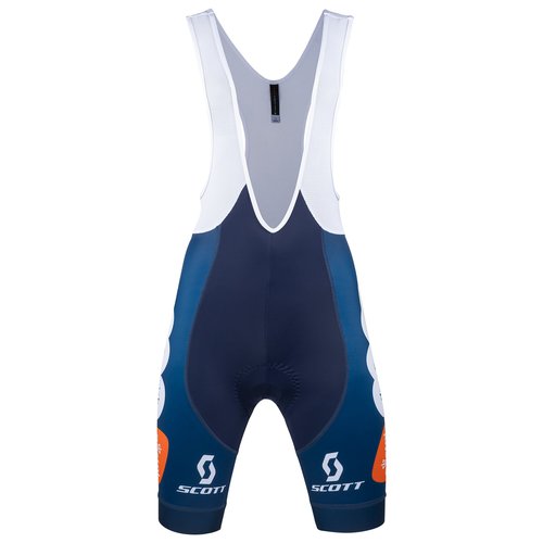 Kurze Trägerhose des offiziellen Team-Ausrüsters in aktuellem Teamdesign. Top Hose für Ihr Radsporttraining! aus elastischem, Muskel unterstützendem und abriebfestem Funktionslycra Trägerteil aus atmungsaktivem, leichtem Mesh anatomischer Mehrbahnenschnitt mit reibungsarmen Flachnähten rutschfeste Beinabschlüsse aus weichem Elastikband bi-elastisches, komfortables, atmungsaktiv perforiertes und Feuchtigkeit regulierendes 2 L 8/100 Tiger Sitzpolster mit antibakterieller Oberfläche für mittellange Strecken.Material 1: 82% Polyester, 18% Elasthan; Material 2. 78% Polyamid, 22% Elasthan; Material 3. 79% Polyester, 21% Elasthan; Material 3: 82% Polyester, 18% Elasthan