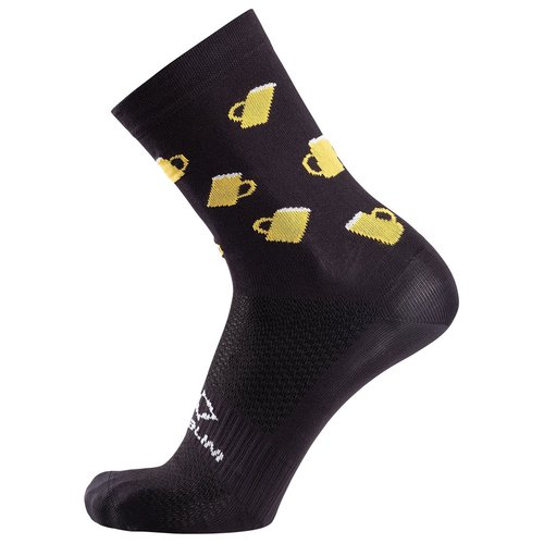Ultraleichte und atmungsaktive Radsocken mit einem Strickdesign zum Schmunzeln. Flexible Strickstrukturen im Mittelfußbereich sorgen für angenehmen Tragekomfort und Unterstützung des Fußes. aus Feuchtigkeit regulierendem, elastischem Polyamid-Gewebe Mittelfußstütze mit zusätzlichen elastischen Einsätzen Bündchenhöhe ca. 19 cm Größen: S-M (38-40), L-XL (41-43), 2XL (44-46)Material: 92% Polyamid, 6% Elasthan, 2% Gummi