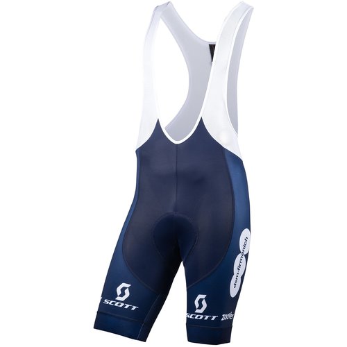 Kurze Trägerhose des offiziellen Team-Ausrüsters in aktuellem Teamdesign. Top Hose für Ihr Radsporttraining! aus elastischem, Muskel unterstützendem und abriebfestem Funktionslycra Trägerteil aus atmungsaktivem, leichtem Mesh anatomischer Mehrbahnenschnitt mit reibungsarmen Flachnähten rutschfeste Beinabschlüsse aus weichem Elastikband bi-elastisches, komfortables, atmungsaktiv perforiertes und Feuchtigkeit regulierendes 2.6M 8/100 Tiger Sitzpolster mit antibakterieller Oberfläche für mittellange Strecken.Material 1: 82% Polyester, 18% Elasthan; Material 2. 80% Polyamid, 20% Elasthan; Material 3. 79% Polyester, 21% Elasthan