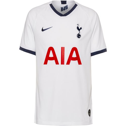 Nike TOTTENHAM HOTSPUR 19/20 HEIM. Heimtrikot von Tottenham Hotspur für die Saison 2019/2020; V-Ausschnitt; Kragen und Ärmelabschlüsse mit Rippbündchen; Logo-Print, Wappen und Sponsorenprint auf der Vorderseite; Mesh-Einsatz im Nacken für Ventilation; feuchtigkeitsregulierendes Dri-FIT-Material; hoch atmungsaktiv; Material 100 % Polyester.