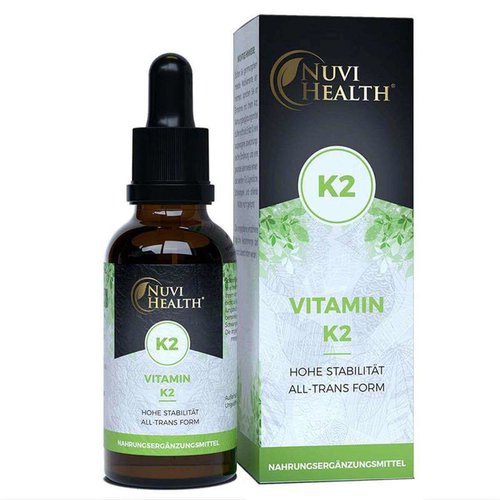 Was hat es mit den Nuvi Health Vitamin K2 Tropfen auf sich? Bei den Vitamin K2 Tropfen von der Marke Nuvi Health handelt es sich um absolut reine Tropfen, welche nur aus den besten Zutaten hergestellt wurden und einen optimalen Wirkungsgrad haben. Da es sich bei Vitamin K um ein fettl?sliches Vitamin handelt, kann es besser vom K?rper aufgenommen werden, wenn es mit einer Fett- oder ?lquelle kombiniert ist. Aus diesem Grund hat Nuvi Health sich f?r hochwertiges MCT-?l aus Kokos als Tr?gerstoff f?r Vitamin K2 entschieden. In dieser Kombination weist es die h?chste Bioverf?gbarkeit auf und kann somit am schnellsten aufgenommen werden. Au?erdem wird das Vitamin ausschlie?lich aus dem Premiumrohstoff K2VITAL gewonnen, welcher nachweislich der sicherste und reinste ist. So k?nnen die Nuvi Health Vitamin K2 Tropfen effektiv die Gesundheit unterst?tzen, indem Vitamin K2 die Erhaltung von normalen Knochen und Z?hnen f?rdert und ebenfalls zu einer normalen Blutgerinnung beitr?gt. Die wichtigsten Fakten im ?berblick Hochwertige Tropfen mit Vitamin K2 Reine Premiumrohstoffe Hochwertiges MCT-?l aus Kokos als Tr?gerstoff H?chste Bioverf?gbarkeit und schnelle Aufnahme F?rdert die Erhaltung von normalen Knochen und Z?hnen Normale Blutgerinnung wird unterst?tzt F?r wen sind die Vitamin K2 Tropfen empfehlenswert? Die Nuvi Health Vitamin K2 Tropfen sind f?r alle Personen empfehlenswert, die auf der Suche nach einem hochwertigen Vitamin K2 Supplement sind, welches ausschlie?lich aus reinen und besonders hochwertigen Rohstoffen besteht, um effektiv die Gesundheit zu unterst?tzen. Dieses Supplement zeichnet sich durch seine hohen Standards in der Qualit?t und durch eine hohe Dosierung aus, sodass die bestm?glichen Ergebnisse erzielt werden k?nnen.