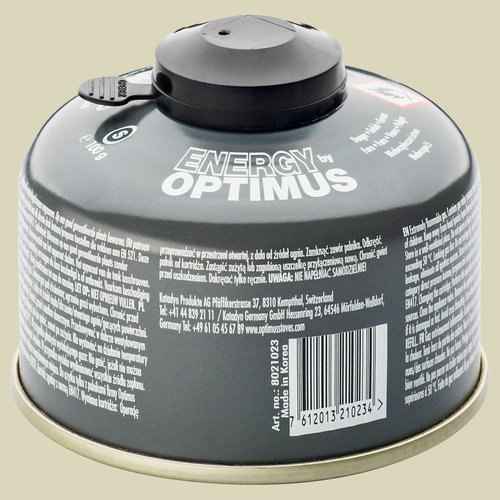 Die Gaskartusche von Optimus enthält eine erstklassige Mischung aus Isobutan Propan und Butan, die die Kochleistung auch bei Temperaturen um den Gefrierpunkt sicherstellt. Die dunkelgraue Farbe der Kartusche wirkt bei Sonneneinstrahlung wärmend auf das Gas. Ein innovatives Ventil schützt die Optimus Gaskartusche vor Beschädigungen und zeigt an, ob die Kartusche neu oder benutzt ist.
