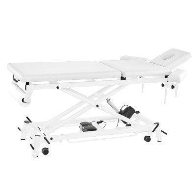 Pader Medi Tech Elektrische Therapieliege Ecofresh, 80 cm, 3-teilig: komfortable und vielseitige Behandlungsliege - Auf der Pader Medi Tech Elektrische Therapieliege Ecofresh 3.0 mit 80 cm Breite liegen auch breiter gebaute Personen bequem. Die 7 cm starke Polsterung mit strapazierfähigem, pflegeleichtem und antimikrobiellem Kunstlederbezug erhöht den angenehmen Liegekomfort zusätzlich. - Komfortable elektrische Höhenverstellung - Durch die stufenlose Höhenverstellung zwischen 51-100 cm und einer Tragfähigkeit von bis zu 135 kg bieten sich viele Einsatzmöglichkeiten in Praxen, bei Massage und Wellness. Das Kopfteil ist mit einen Einsatz für einen Nasenschlitz ausgestattet. Es lässt sich abklappen und in einem Bereich von +45 Grad bis -90 Grad verstellen. Das Fußteil kann stufenlos bis ca. 85 Grad aufgerichtet werden. Das stabile Scherensystem und die Pulverbeschichtung machen sie zu einer langlebigen und praktischen Therapieliege für Ihre Einrichtung.