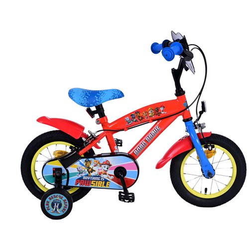Das Paw Patrol Core 12 Zoll Kinderfahrrad ist ein farbenfrohes und robustes Fahrrad, das perfekt für kleine Abenteurer:innen im Alter von 3 bis 4 Jahren geeignet ist. Mit seinem auffälligen Design zieht es alle Blicke auf sich!Der stabile Stahlrahmen und die wartungsfreie Stahl-Starrgabel sorgen für eine langlebige Konstruktion, die auch wildesten Fahrten standhält. Der Stahl Riser Bar Lenker mit einer Breite von 480 mm und die kindgerechten Kunststoffgriffe bieten kleinen Händen einen sicheren Halt. Dank der Einfachschaltung können sich die Kinder voll und ganz aufs in die Pedale treten konzentrieren, hier braucht es keine komplizierten Schaltvorgänge. Für die nötige Sicherheit, wenn es doch zu flott vorwärts geht, sorgen mechanische Felgenbremsen an Vorder- und Hinterrad, die einfach und intuitiv über den Drefingertyp-Bremshebel bedient werden. Die Fahrradreifen mit Straßenprofil eignen sich zum Flitzen über Feld- und Waldwege wie auch über Asphalt.Da die Sattelstütze, auf der ein bequemer MTB-Sattel sitzt, höhenverstellbar ist, wächst das kleine Bike eine zeitlang auch noch mit dem Kind mit. Der umlaufende Kettenschutz und die Schutzbleche halten den gröbsten Dreck vom Nachwuchs fern und verhindern, dass Hosenbeine und Kleidung in die Kette geraten oder Ölflecken abbekommen.Wir empfehlen das Paw Patrol Core für Kinder mit einer Körpergröße von 90 bis 105 cm bzw. einem Alter von 3 bis 4 Jahren.Da das Fahrrad zu mindestens 85% vormontiert ausgeliefert wird, kann die Fahrt nach einer kurzen Endmontage und Prüfung sofort losgehen.Technische Daten:Hersteller:Paw Patrol Modell:CoreFarbe:blau/rot/gelbGänge:1Rahmengröße:22 cmLaufradgröße:12 ZollRahmen:Stahl DiamantrahmenGabel:Stahl StarrgabelSteuersatz:1 Zoll StahlVorbau:SchaftvorbauLenker:Stahl Riser Bar, Breite: 480 mmGriffe:Kunststoff mit FlanschBremshebel:Kunststoff DreifingertypKurbelgarnitur:einfach, Stahl, 26 ZähneKassette:Einfachritzel, Stahl, 16 ZähneKette:1/2" x 1/8"Innenlager:StahlBremsen:mechanische FelgenbremsenReifen:12 x 1,75 Zoll mit StraßenprofilFelgen:StahlNaben:StahlSpeichen:16 StückPedale:Kunststoff Plattformpedale, 1/2" AchseSattel:Kindersattel, Schaumstoff mit KunststoffbezugSattelstütze:Stahl Kerzensattelstütze, Durchmesser: 25,4 mmSchutzbleche:KunststoffKettenschutz:Vollkettenschutzempfohlene Körpergröße:90 - 105 cm bzw. 3 - 4 JahreSattelhöhe vom Boden:43 - 48 cmÜberstandshöhe:39 cmzulässiges Gesamtgewicht:60 kgGewicht:9,6 kgLieferzustand:85 % vormontiert. Lenker geradestellen, Vorderrad und Pedale montieren, Schaltung, Bremsen und Schrauben prüfenLieferumfang:1 Fahrrad, Zubehör (Reflektoren, Glocke, Schutzbleche, Kettenschutz, Lenkerschild, Stützräder, Betriebsanleitung)