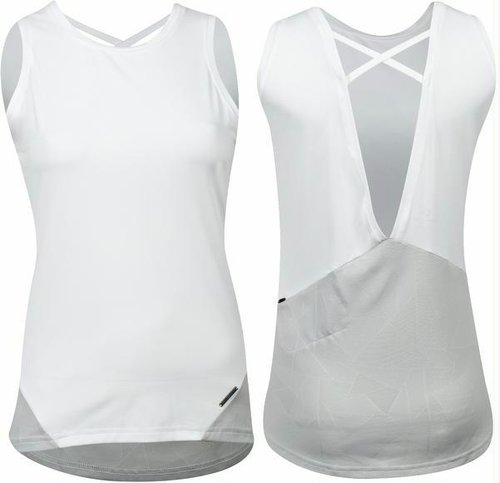 Entwickelt fürs Workout im Fitnessstudio oder für Fahrerinnen, die auf die Verstaufunktion eines klassischen Radtrikots verzichten können, überzeugt dieses Tanktop durch einen etwas großzügigeren Schnitt und einen modischen Fitness-Look. Der hohe Aussc