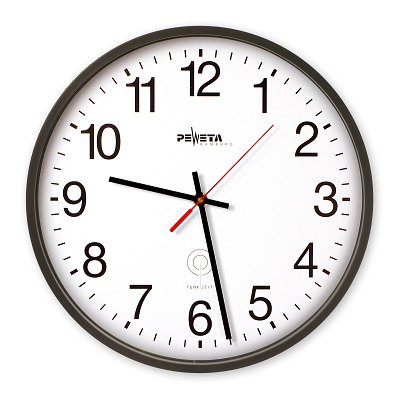 PewetaFunk-Wanduhr "ø 30 cm", Zifferblatt arabische Zahlen, Schwarz