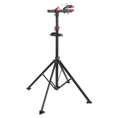 Klappbarer Arbeitsfahrradständer mit Schnellspanner, aus Stahl und ABS, mit Werkzeugablage und voll einstellbar mit KnöpfenDieser Fahrrad-Reparaturständer verfügt über hochwertige Stahlrohre, eine Schnellspannklemme, Höhenverstellung und klappbare Beine, die Ihnen hervorragende Performance-Materialien in angenehmer Höhe bieten. Diese mechanische Halterung kann Fahrräder bis zu 30 kg mit 25 bis 40 mm Rohren tragen und hält Ihr Rennrad oder Mountainbike mit Stabilität und Leichtigkeit. Mit einer einstellbaren Höhe von 101 171 cm und einer 360-Grad-Drehklemme mit Schnellverschluss ermöglicht Ihnen unsere Fahrradreparaturstation, die Arbeit zu Ihnen zu tragen, damit Sie sich nicht bücken müssen, ohne Schmerzen und Zerrungen zu verursachen. Durch das Teleskoprohr und die klappbaren Beine können Sie diesen tragbaren Reparaturständer für ein Rennen im Kofferraum Ihres Autos oder in einer Ecke platzsparend verstauen.Wer eine intelligente und komfortable Lösung haben möchte, sollte sich immer auf das Vorhandensein eines Fahrrad-Wartungsständers verlassen können. Mit diesem Werkzeug können Sie das Fahrrad vom Boden abheben, sodass Sie alle gewünschten Arbeiten bequem ausführen können.Spezifikationen:Maße:140x140x105 190h cm offen10x25x100h cm geschlossenGewicht 5,5 kg