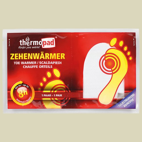 Die Thermopad® Zehenwärmer funktionieren durch Oxidationsprozess und Sauerstoffzufuhr. Die Thermopad® Zehenwärmer erreichen maximal 45°C und eine durchschnittliche Temperatur von 37°C. Die Wärmekissen können mit einer selbstklebenden Seite an den Socken unter oder über den Zehen befestigt werden und halten die Wärme bis zu 6 Stunden. Nach kurzer Wartezeit entfaltet sich angenehme Wärme und sorgt für warme Zehen.